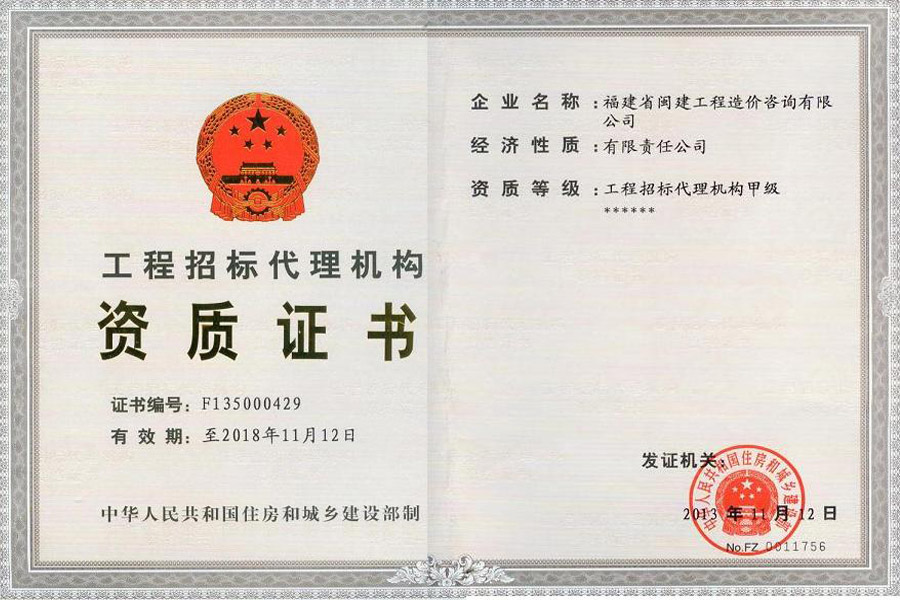 福建省閩建工程造價咨詢有限公司成立于1993年,原隸屬福建省建設(shè)委員會,2001年脫鉤改制為有限責(zé)任公司,公司注冊資本1200萬元,是一家具有甲級工程招標(biāo)代理資質(zhì)(證書編號:F135000429)、甲級工程造價咨詢資質(zhì)(證書編號:甲150135000084)、政府采購代理資質(zhì)、預(yù)備級中央投資項目招標(biāo)代理機構(gòu)資質(zhì)(證書編號:ZYTZ-C2013239)、丙級工程資質(zhì)(證書編號:工咨丙11520160008)的綜合性工程咨詢服務(wù)單位。能承擔(dān)各類建設(shè)項目的工程招標(biāo)代理、工程造價咨詢...